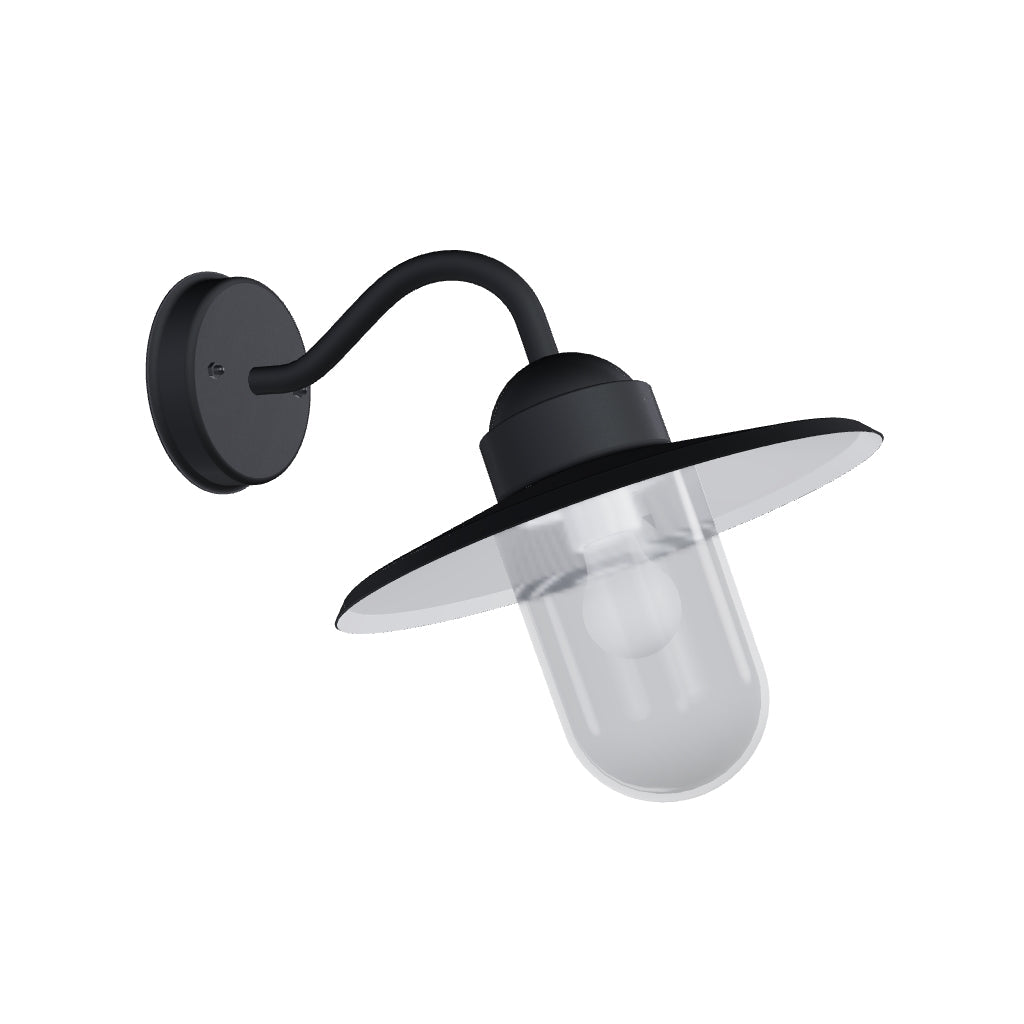 Outdoor wall light in retro-style with an E27 socket covered by a glass dome.