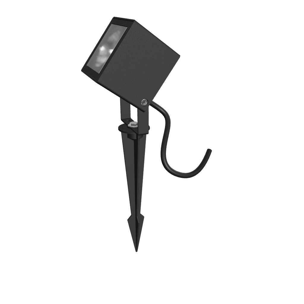 Square outdoor spotlight with integrated LED and a 1 m power cord that has no plug.