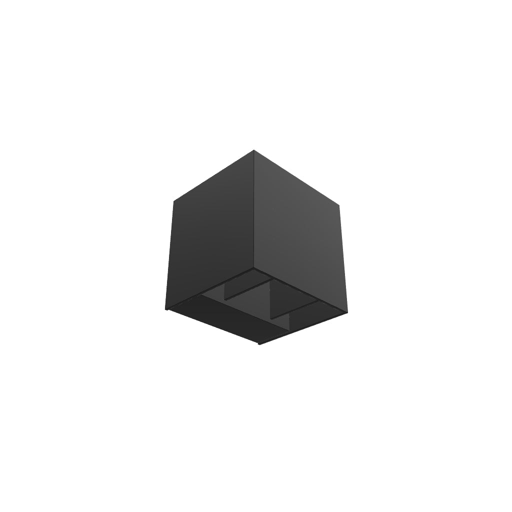 Angular wall lamp with integrated LED for UP/DOWN illumination, with two metal blades to adjust the light beam.