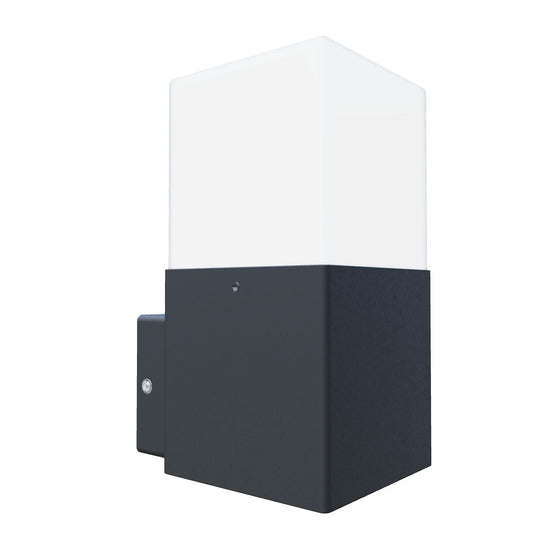 Outdoor wall light with an opal-colored shade and E27 socket for LED light sources.