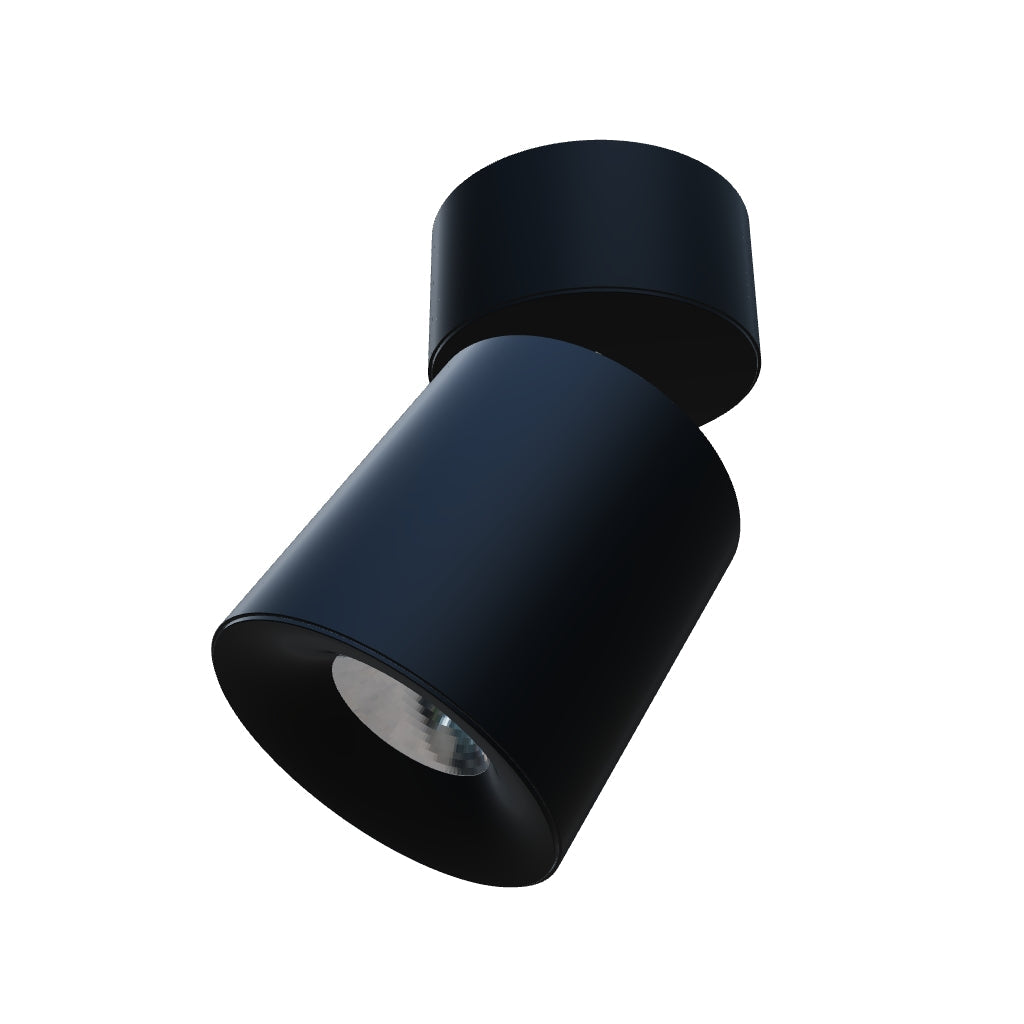 Solid cylindrical ceiling light with integrated LED and tilt-function.