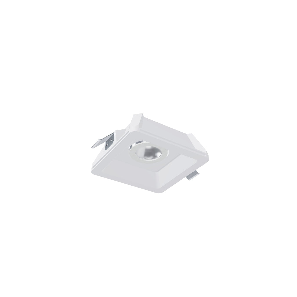 Recessed trimless downlight of plaster with a square opening. Surface can be colored with interior paint. Only for drywall installation.