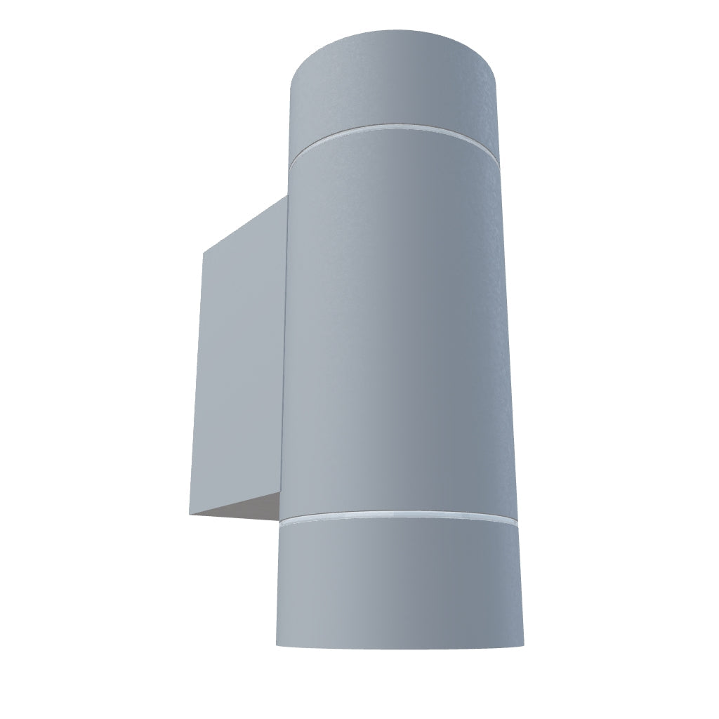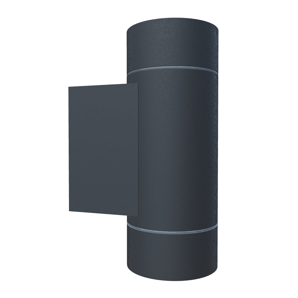 Outdoor wall light of die-cast aluminum with a GU10 socket for LED light sources.