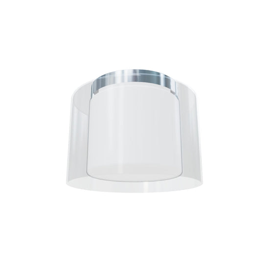 Ceiling light with a combined shade consisting of exterior clear glass and interior opal-colored glass, situated on a chrome-plated base and with an E27 socket for LED light sources. Suitable for use in bathrooms.