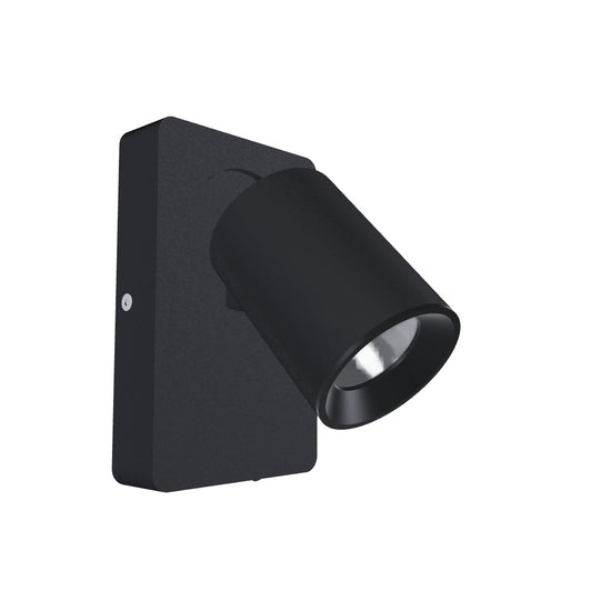 Lacquered wall light with a directional GU10 light source and integrated USB suitable for charging of smart phones or similar devices.